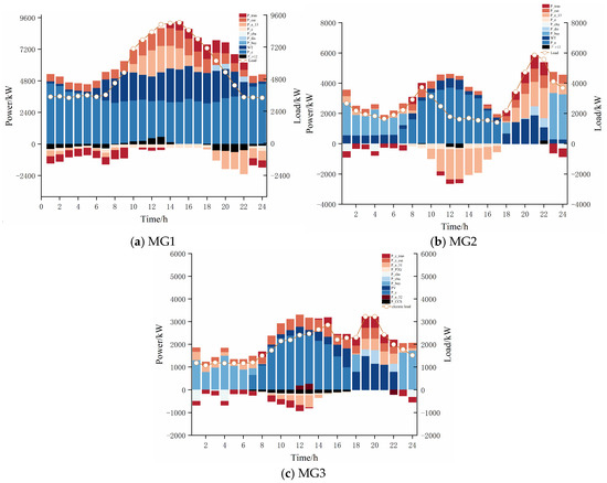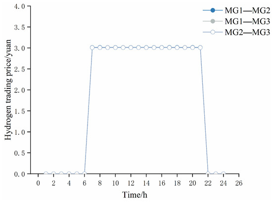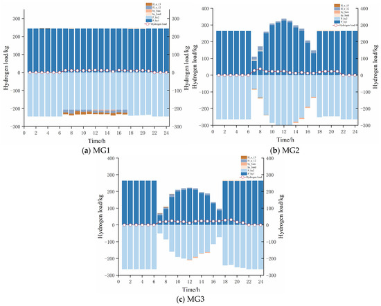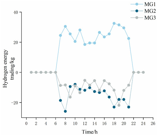 Energy sharing should be extended from single electricity to multi-energy sharing with the development of integrated energy systems [22]. Refs. [23,24,25], based on a game theory approach, realized multi-microgrid electricity and heat trading to improve the economy and flexibility of system operation. Ref. [26] established a multi-microgrid day-ahead optimization scheduling model that takes into account combined cooling, heat, and electricity, enabling the trading of electricity and heat and reducing the operating costs of the three MGs by 21.8%, 5.5%, and 20%, respectively. Furthermore, Ref. [27] measured the contribution capacity of MGs in terms of both wind power consumption and the total output of CHP units and employed an ANB model to achieve a fair distribution of benefits after electricity and heat trading. The literature noted above indicates that multi-energy trading can further reduce operation costs and improve renewable energy consumption. However, most of this literature is based on electricity and heat trading. The literature on hydrogen energy trading within the MEMG network remains rare.