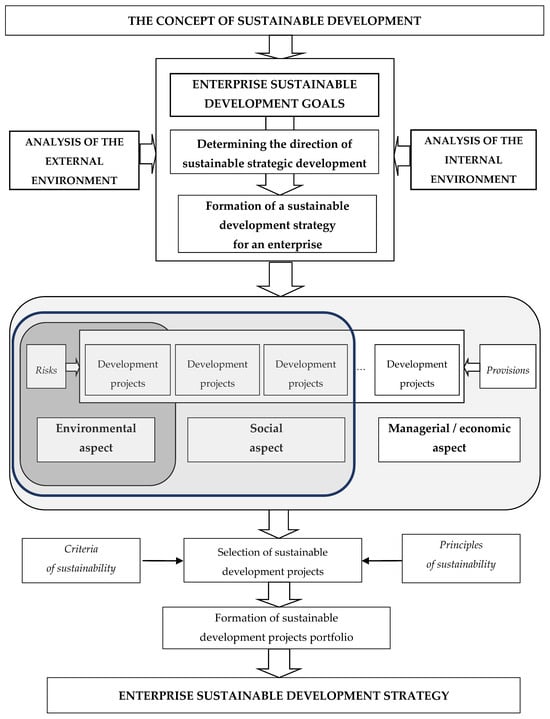The starting point of the study was the results of analytical data characterizing the level of sustainable development of national states in terms of achieving the SDGs, demonstrating a clear “time-lag” from planned indicators. Based on the justification of the role of digital technologies as a factor-catalyst of processes of transition to sustainable development, theoretical and historical analysis of the field of knowledge of digitalization and sustainable development is carried out, the practice of applying digital technologies within the framework of ESG transformation of enterprises, which allowed for justifying the special role of artificial intelligence. Developing the topic under investigation, based on existing theory and practice, the authors specified the role of artificial intelligence in design-thinking processes and presented a model of sustainable enterprise strategy, the most important stage, which is project selection, achieving the stated sustainable goals. Taken together, this ensured the validity and credibility of the main findings and results of the study.