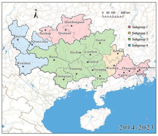 Subgroup 4 consists of Qianxinan, Wenshan, and Qujing, located in the western part of the Pearl River–Xijiang Economic Belt. These cities are situated more than 500 kilometers from both Guangzhou and Nanning, and are geographically distant from the main Xijiang River channel.