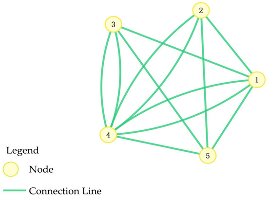 In urban logistics networks, the degree value of a node indicates its characteristics within the network. From a network topology perspective, a higher degree value signifies a more critical role for the node in the overall network. If is a node, its degree value reflects the total number of edges directly connected to it (Equation (1)). Thus, the degree of a node represents the amount of neighboring nodes it has.