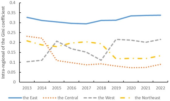 Intra-regional Gini coefficient of the digital economy level in China’s four major regions.