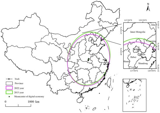 Migration path of the digital economy’s center of gravity from 2013 to 2022.