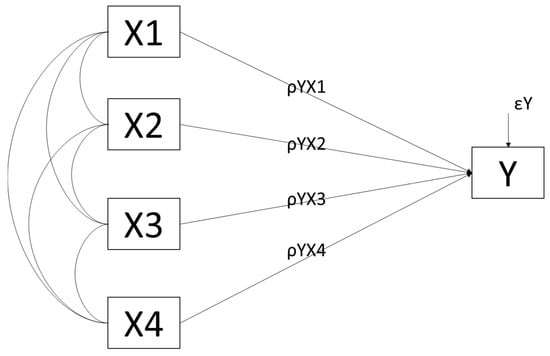 - A path analysis tool was used to test this hypothesis. Path analysis was used because the control variables in the model were theoretically related to each other. To test this hypothesis, path analysis was conducted to assess the direct effect of climate policy management (X1) on firm value (Y) while controlling for firm size (X2), profitability (X3), and cost of debt (X4). Firm size is related to profitability because it may result from the use of firm assets. Large company assets can generate high profits. Company assets are also a significant guarantee of debt; therefore, company size is related to the cost of debt. Company profitability can also reduce the cost of debt because of the high level of investor confidence in companies with high profitability, which indicates low financial risk. Path analysis was performed using the ordinary least squares (OLS) approach, so classical assumption testing was required in the form of normality, multicollinearity, heteroscedasticity, and autocorrelation tests to ensure that the model would be sufficiently good for testing. The path diagram for this study is presented in Figure 1. The path equation is as follows: