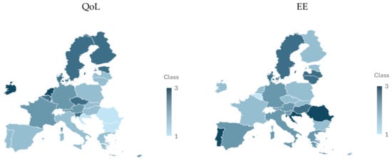 The study presents results describing QoL and EE in one-dimensional and multidimensional terms, which allowed for a thorough evaluation of the assessment categories in the EU space and distinguishing classes of countries similar in terms of the level of the phenomena studied.
