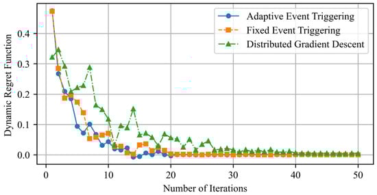 Distributed optimization relies on information exchange between energy storage units, requiring state synchronization at each iteration [27]. High-frequency communication not only increases bandwidth usage and computational overhead but also introduces potential communication delays, leading to asynchronous information updates that can slow down convergence [28]. Therefore, reducing communication frequency and redundant data exchange while maintaining optimization accuracy and convergence is a key challenge in distributed optimization. To address this issue, this paper introduces an event-triggered control mechanism, where communication is triggered only when state changes exceed a predefined threshold, effectively reducing unnecessary data transmission and improving computational efficiency. In recent years, event-triggered strategies have been applied to large-scale optimization problems, where information is updated only when specific trigger conditions are met [29,30,31,32,33]. This approach reduces communication frequency while ensuring convergence and the stability of the optimization process. However, existing event-triggered strategies still have notable limitations: (1) Fixed-threshold strategies determine communication triggers based on a preset threshold. However, in dynamic system environments, a fixed threshold may not adapt to varying state changes. When system state fluctuations are large, excessive triggering may occur, increasing communication overhead. Conversely, when state variations are small, delayed updates may degrade optimization performance. (2) Decreasing-threshold strategies progressively lower the trigger threshold to approximate the global optimum. However, if the threshold becomes too small, it may lead to an excessive communication frequency, increasing the information transmission burden rather than effectively reducing communication costs.