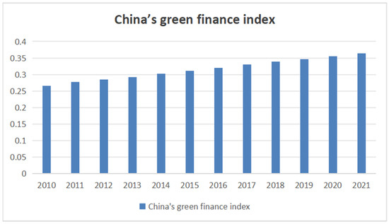 China’s green finance index. Data source: This figure was drawn by the authors using an Excel spreadsheet; the same applies below.