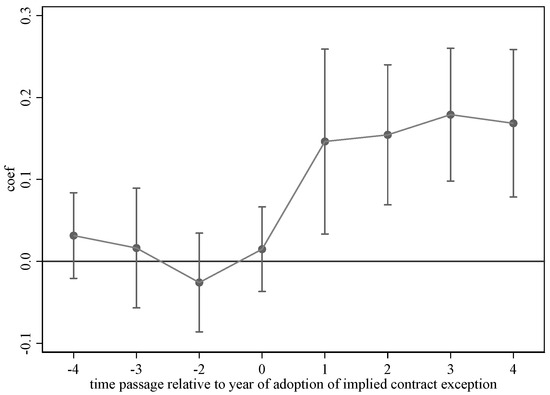 In this context, denotes the policy dummy variable for year m + k, where m is the policy implementation year and k indicates the k-th year relative to m. captures dynamic effects in year k. The results from Equation (2) are visualized in Figure 4. The pre-policy coefficients are statistically insignificant, confirming parallel trends between treatment and control groups prior to the GFRIPZ implementation. Post-policy coefficients become significant and grow over time, indicating that the policy’s impact strengthened progressively. Specifically, the coefficient for 2018 (k = 1) is significant, likely due to immediate incentives such as subsidies, tax breaks, and green credit quotas that took effect in the initial phase. It amplified the policy’s influence on energy structure optimization in subsequent years.