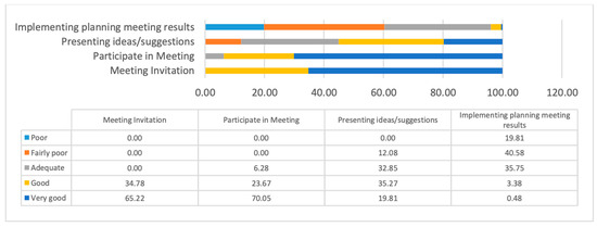 According to [64], planning is a method of achieving goals in the best possible way (achieving maximum output) with the available resources, ensuring greater efficiency and effectiveness. The cited author also notes that planning involves determining the objectives to be achieved or actions to be taken: how, when, and by whom. Reference [65] suggests that planning is a continuous process involving decisions or choices on the use of available resources with the goal of achieving specific objectives in the future. As for the details of the results of the analysis of each stage in participation, they are explained as follows.