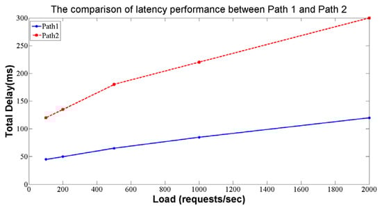 The comparison of latency performance between Path 1 and Path 2.