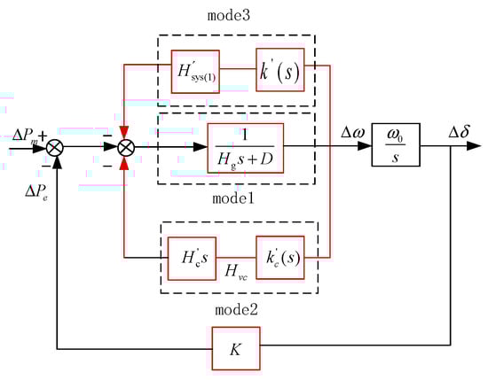 According to the system structure diagram and the inertial equation, the equivalent Heffron–Philips model can be obtained, as shown in Figure 5. The key factors that may cause the virtual inertia instability of the system are identified, and the stability of the system is improved by adjusting the control parameters.