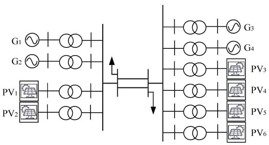 In this paper, the MATLAB/Simulink simulation platform is used for simulation verification, and the simulation system is shown in Figure 10. The parameters of the synchronous generators of each photovoltaic station in the system are shown in Table 1. The system simulation parameters are shown in Table 2.
