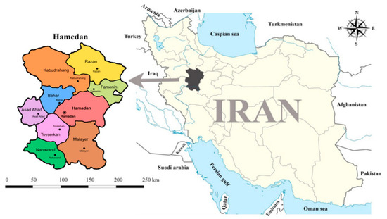 - Agriculture Organization of Hamadan Province. Basic Statistics for 2023 in Hamadan Province; Agriculture Organization: Hamadan, Iran, 2024; Available online: https://hm.agri-jahad.ir/assets/doc/base-statistics/1402/کشاورزی.pdf (accessed on 10 May 2024).