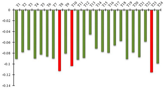 In the threats category, among 24 identified factors, the 3 most critical threats to greenhouse sustainability are bureaucratic banking regulations requiring collateral and lengthy financing procedures (coefficient: −0.115), high dependency on imported equipment and inputs, exacerbated by currency fluctuations (coefficient: −0.113), and instability in export markets due to sanctions, tariffs, and sudden trade bans (coefficient: −0.104) (Table 3, Figure 4 and Figure 5). These issues pose serious risks to sectoral sustainability. Restrictive banking procedures limit access to capital, deterring investment and innovation. Dependency on imports exposes producers to global supply chain disruptions and price volatility, complicating cost management. Moreover, unpredictable export conditions hinder long-term planning and profitability, discouraging investment in technologies and infrastructure critical for sustainable development.