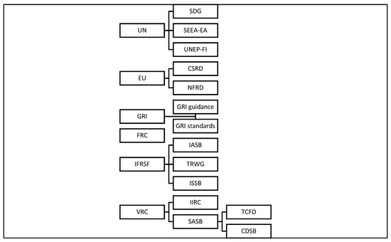 In 2001, the IFRS Foundation launched as a platform to provide global investors transparent and comparable information [50]. A total of 140 jurisdictions accepted the Accounting Standards promulgated by its International Accounting Standards Board (IASB). In 2020, pressure by government and international investors for high-quality, transparent, reliable, and comparable information on climate and other environmental, social, and governance (ESG) matters pushed the Foundation to consult publicly with UK regulatory authorities and government departments. The results suggested a high demand for IFRS-sponsored international sustainability reporting standards. The IFRS’s credibility, established governance structures, and due process support the quick rollout of new sustainability standards. On 3 November 2021 at COP26 in Glasgow, the Foundation launched the International Sustainability Standards Board (ISSB) to develop Sustainability Disclosure Standards (SDS) and sustainability reporting ones. IFRS oversight facilitates connectivity between financial and non-financial reporting. The Foundation’s Technical Readiness Working Group (TRWG) has developed a suite of standards for release by 2022. For guidance, the TRWG intends to leverage existing frameworks such as the Sustainability Accounting Standards Board (SASB), Task Force on Climate-Related Financial Disclosures (TCFD), and Climate Disclosure Standards Board (CDSB). The ISSB intends to consolidate SASB and the International Integrated Reporting Framework (IIRC) into the Value Reporting Foundation (VRF).