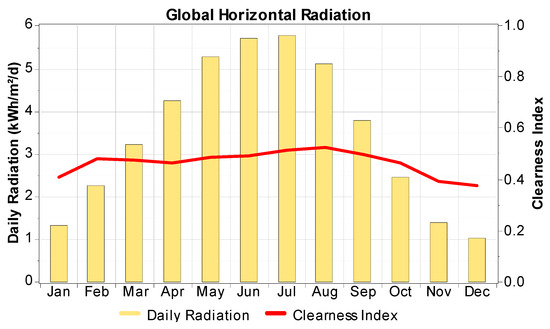 Depending on the Sun’s strength throughout the day, a solar power plant’s output varies and seldom surpasses 80% of the maximum power that solar panels can produce. According to empirical findings, the energy that a solar power plant can produce during the summer months can be calculated as the energy it would generate over a five-hour period at maximum power (which determines the efficiency ηsgmax).