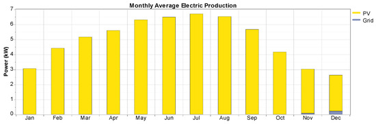 In this simulation, the role of the battery is taken over by the electric distribution network, and it is designed to dimension the solar power plant so that the energy taken from the network on an annual basis is equal to the energy delivered to the network. In this case, the electricity bill for the prosumer practically becomes zero.