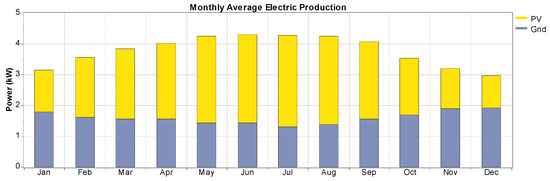 Table 20 shows the distribution of electricity use from own production and energy use from the power distribution network, and Figure 21 shows an overview of the average values of energy use from own production and the network by month (Monthly Average Electric Production).