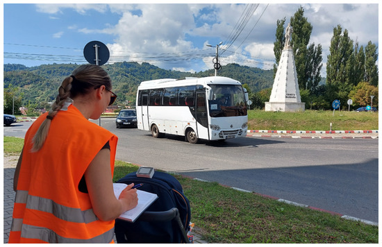 One exception is the “Green Line” ecological public transport project for the Jiu Valley. This EUR 12.2 million project—funded through Regio-POR 2014–2020 and continued through the Regional West Program 2021–2027—includes the acquisition of 26 electric buses, 112 public transport stations, and 34 electric charging stations [40]. Four routes have been planned (one main, three secondary), totaling about 128 km. Current transport demand is 1.58 million trips annually, with a projected increase to 1.75 million by 2030 [41,42].