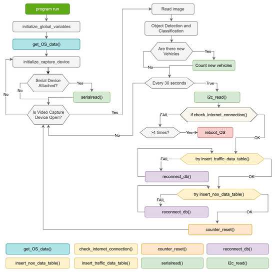 The main program, shown in Figure 8, is written in Python and configured as a service that runs automatically when the Raspberry Pi is powered on. Its core functions include