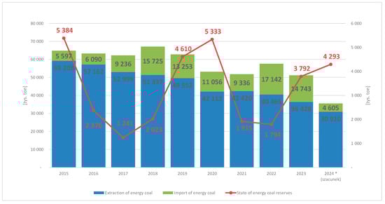 In 2024 (Figure 1), the vast majority of domestic lignite and hard coal was used for electricity generation. Hard coal imports fell to 4.6 million Mg and were a consequence of previously concluded trade agreements.