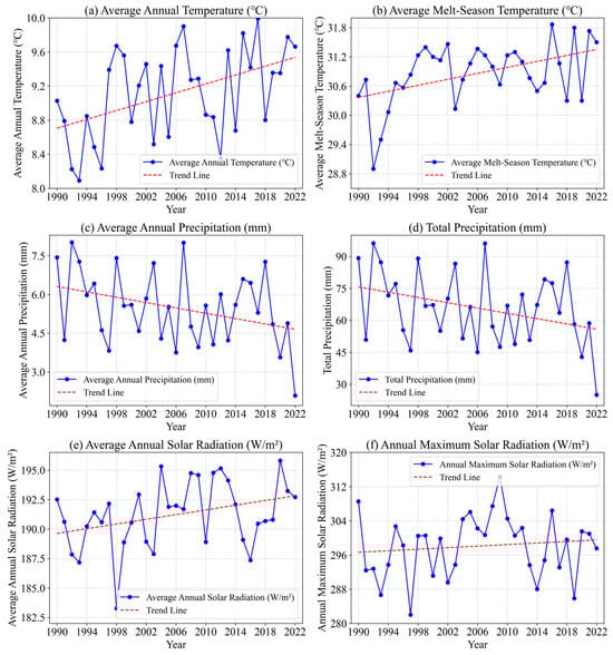 Since the W5E5 dataset ends in 2019, to ensure the continuity of the time series, this study utilized a 1 km resolution monthly temperature and precipitation dataset published by Peng [34,35], processed for consistency, to fill gaps in the mass balance calculations for 2020–2022.