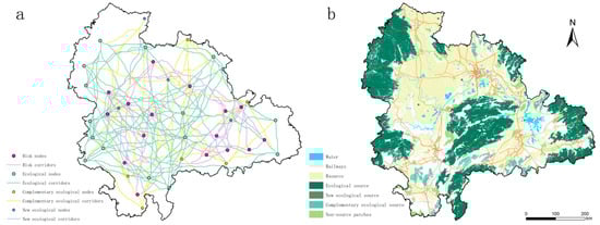 (a) Superimposed ecological and risk networks, (b) ecological and risk source sites.