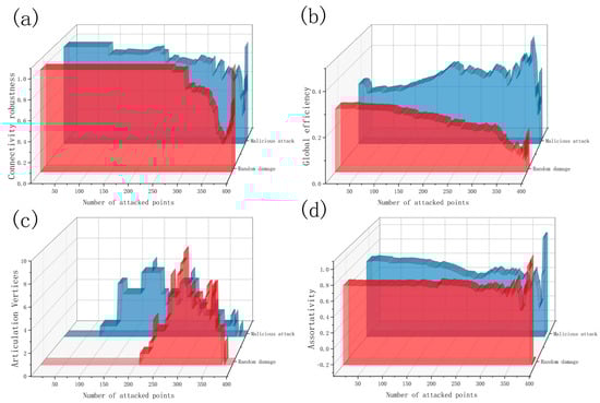 Stability evaluation methods are often used to assess the structural characteristics of networks [37]. Robustness analysis can determine the stability and reliability of a network when it suffers damage [38]. The robustness, homogeneity, and network fragmentation (Table 5) of the network are comprehensively analyzed to measure its stability and resilience in the face of external disturbances.
