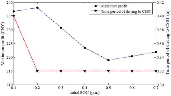 - To describe the combined influence of driving path planning and EAM selection on decision making, the driving time to a CSST and the time required for energy acquisition are estimated by energy cost and income loss. Additionally, the saved charging time under the swapping mode is estimated by energy cost and operation income. To help an EVT achieve the maximum profit, a unified decision-making method is developed by selecting both the driving path to the CSST and the appropriate EAM at the CSST.