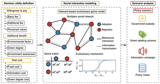 Building upon these foundational approaches, researchers have increasingly turned to more sophisticated modeling techniques to capture the complexity of sustainable lifestyle decisions. Cheng et al. [14] built a sustainable lifestyle decision model for residents from the perspective of regret and game theory. Through agent-based simulations, they analyzed the effects of preferences, income, and interaction intensity. Yang et al. [15] constructed a network-based decision model for sustainable consumption behavior and simulated the effects of different regulatory policies on sustainable behavior adoption. Cheng et al. [16] focused on the experienced utility of policies that influence sustainable lifestyle decision-making. They developed a model to measure the experienced utility of sustainable lifestyle guiding policies. In addition, several studies have explored the consumption decision-making process for specific sustainable products and projects such as electric vehicle purchases [17], residential photovoltaics adoption [18], and sustainable food shopping [19].