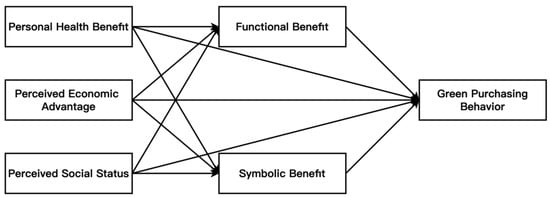 Symbolic benefits (SB) play a pivotal role in influencing consumers’ green purchasing behavior (GPB) by addressing emotional and identity-related motivations. Unlike functional benefits, which are largely grounded in tangible and practical outcomes, symbolic benefits center around the intangible rewards associated with consuming green products, such as social recognition, ethical satisfaction, and self-identity enhancement [8]. These benefits cater to individuals’ psychological needs for status, pride, and social conformity, which have been shown to significantly influence purchasing behavior, particularly in socially and culturally driven markets. One of the key mechanisms underlying the symbolic appeal of green products is their role as status symbols. Green products signal an individual’s commitment to environmental responsibility and ethical values, which enhances their reputation and social standing [21]. This is particularly evident in collectivist cultures, where social norms and community expectations strongly influence personal decision-making [31]. For instance, purchasing eco-friendly goods such as electric vehicles, sustainable clothing, or organic products enables individuals to project a socially responsible image that aligns with societal expectations. Research has shown that green purchasing behavior is often motivated by the desire to conform to these social norms, as individuals seek approval and recognition from their peers [30,32].