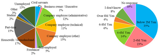 Although we have gathered information about individuals’ income and employment type, as shown in Figure 4, we have not used these variables in our analysis. The focus of the current study is to consider major socio-demographic variables such as age, gender, and place of residence.