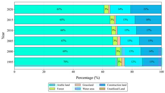 Land use proportion in Jiangsu Province from 1995 to 2020.