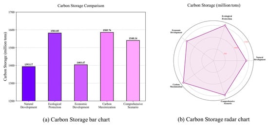 This scenario aims to maximize carbon storage by optimizing land use. It enhances the carbon sequestration function of ecosystems, mitigates climate change, and further constructs a land use structure oriented towards low carbon, achieving the “carbon neutrality” goal more quickly [32].