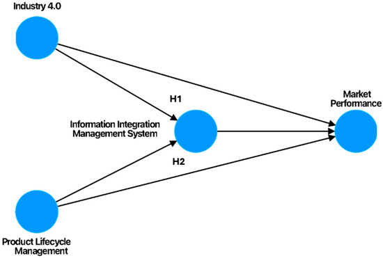 Another interesting perspective identified by the literature review was that PLM increased the efficiency of IIMS by enabling better integration and sharing of information throughout the product lifecycle [14]. This is because PLM strengthened coordination and agility in IIMS by facilitating continuous data management, providing a competitive advantage and superior MP [23]. PLM also effectively integrated product information, strengthening the structure and effectiveness of IIMS [36]. Based on these considerations, we formulate the following hypothesis: