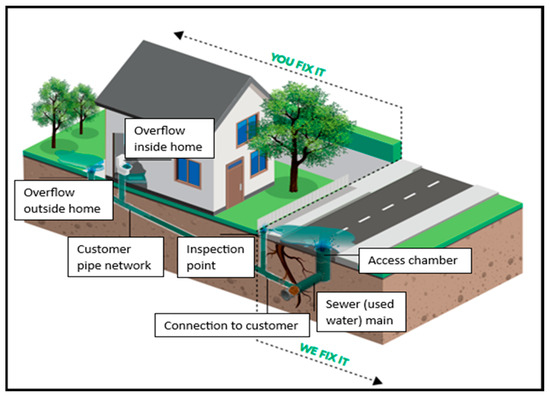 Illustration of sewer mains issues and responsibility between the house owner and water utility (adopted from SA Water Annual Report [14]).