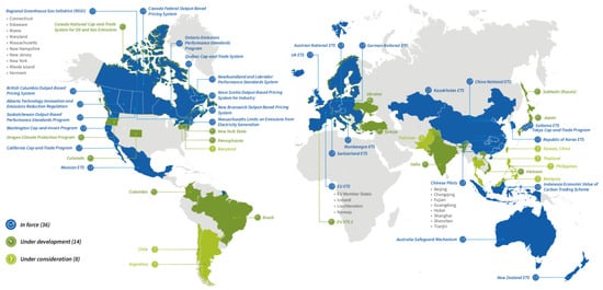 - International Carbon Action Partnership. Emissions Trading Worldwide: ICAP Status Report 2024; ICAP: Berlin, Germany, 2024. [Google Scholar]