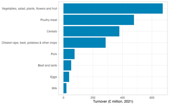 The detailed exploration of a real-world context requires using qualitative and quantitative data to examine real situations rather than theoretical conjecture (the what, where, when, and who). This approach has been used here. In 2019, Greater Lincolnshire had a total agricultural output of over GBP 2 billion (12% of England’s total production) [64]. Furthermore, the food chain provided 24% of jobs throughout Greater Lincolnshire (as compared with 13% nationally) and 21% of its economic output (7% nationally) [64]. The Greater Lincolnshire Local Enterprise Partnership Agri-Food Sector Plan (2017) [65] focused on three key areas: having a supply chain focus, production efficiency, and focusing on meeting customer needs which would be enabled by labor productivity and skills, integrated skills and innovation support, market focus and trade, investment in physical infrastructure, developing clusters of food businesses within enterprise zones, and seeking partnerships to ensure continued investment in transport infrastructure. Within the ‘UK Food Valley’, several key food clusters have emerged. Fish processing in the region accounts for 60% of the UK’s total fish processing capacity. The fresh produce sector supplies 26% of vegetables and salads, 13% of potatoes to national multiple food retailers and 19% of ornamentals to garden centers [36]. Poultry production is also significant, constituting 20% of the UK’s duck production, 18% of chicken and turkey production and 7% of egg production. Additionally, the area contributes 12% of England’s arable crop output and 11% of cereal production. Other important sectors include plants and alternative proteins (accounting for 11% of national dried pea and bean production), agri-technology and food technology development, as well as food logistics and marketing [36]. The report states [66] that 59% of agricultural output is with crop production and 41% livestock-based and