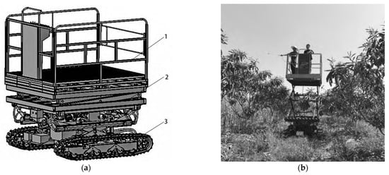 - Jin, S. Design and Research of Electric Working Platform for Fruit Picking and Transportation. Master’s Thesis, Hunan Agricultural University, Changsha, China, 2022. [Google Scholar]