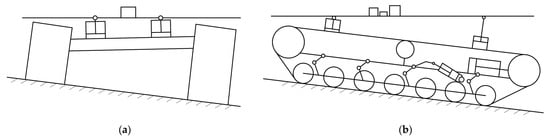 - Balchanowski, J. Modelling and Simulation Studies on the Mobile Robot with Self-Leveling Chassis. J. Theor. Appl. Mech. 2016, 54, 149. [Google Scholar] [CrossRef][Green Version]