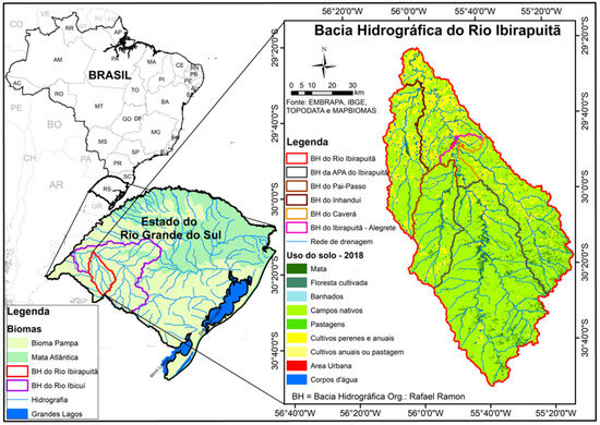 Figure 1. Delimitation of the study area in the Pampa biome of Brazil: the Ibirapuitã River basin. Source: Viana et al. [34].