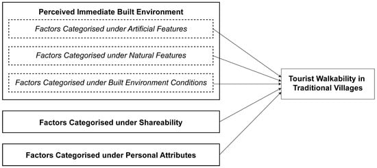 Tourist Walkability in Traditional Villages: The Role of Built Environment, Shareability, and Personal Attributes