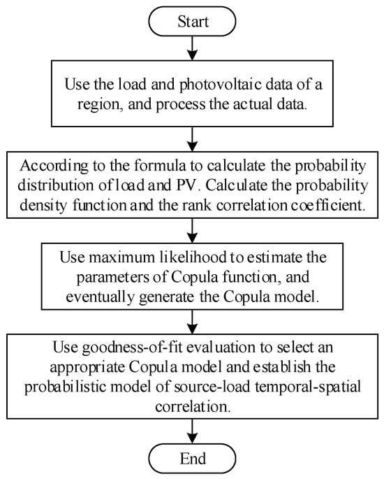 The diagram for generating the probabilistic model of source load temporal–spatial correlation based on Copula theory is shown in Figure 1.