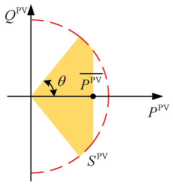 The increase in PV capacity will lead to overvoltage issues in the grid. To address this problem, this paper adopts the Optimal Inverter Dispatch [28] (OID) strategy, which controls the active and reactive power of PV simultaneously. The operating range of PV under the OID strategy is illustrated in Figure 4.