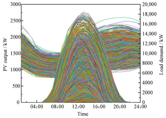 Inverse function calculations are involved in analyzing the correlation between both PV and load. First, the Copula probability model is used to derive the peripheral distribution functions of PV output and load demand. Subsequently, inverse function calculations are performed for each of these two peripheral distribution functions. This approach ensures that the temporal–spatial correlation between PV output and load demand is fully considered in the generated scenarios.