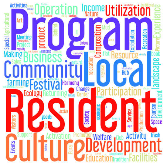 The results reveal that words such as residents, projects, participation, and region were emphasized in most of the topics. When the same words appear repeatedly, it means that they have important meanings throughout the rural revitalization project. Excluding general words, we derived specific features for each topic based on the words that could be differentiated.