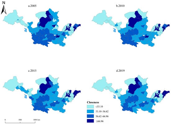 - From 2005 to 2019, all cities in the YRB were in an associated network, and there were no isolated cities. The cities had a balanced position in the network, but the density of the network was low, and the stability of the network needed to be further strengthened. In terms of individual attributes, Shandong Peninsula, Hubao-Eyu, Taiyuan, and Zhengzhou were not only hub nodes, but also had close relationships with neighboring cities, effectively playing the role of hub connection and intermediary. On the contrary, cities such as Gansu, Ningxia, Shanxi, Shaanxi and Henan were marginal in their connections with other cities.