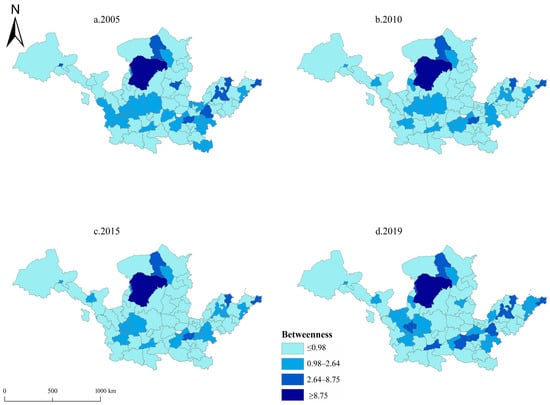 3.3.2. Individual Network Characteristic of Spatial Association Network