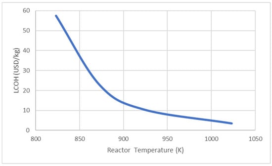 Sensitivity analysis was conducted to identify the key parameters for the estimation of LCOH. The sensitivity of process parameters, such as reactor temperature, was analysed by varying this parameter from 823 K to 1073 K. The sensitivity of economic parameters, such as the ammonia price, operating labour cost, purchased equipment cost, building cost, and utilities cost, was analysed by varying these parameters by 30% while keeping the rest constant.