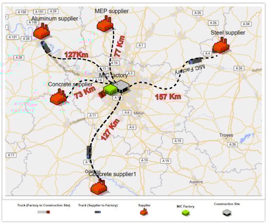 As shown in the figure, all the actors in the MiC supply chain are interconnected and depend on each other. Any effort to improve one part of the system can affect the performance of the entire chain. To build an efficient and sustainable supply chain, we need to find ways to reduce transportation costs and carbon footprint, while still ensuring that deliveries respect the timeline. Finding the right balance between these parameters is key to optimizing the MiC supply chain. Further details regarding these supply chains can be found in our study [70].