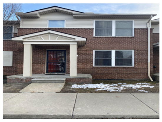 Friends of Parkside (FOP) is a 501(c)(3) organization located in the Villages at Parkside (TVP)—a public housing community on Detroit’s east side. Originally named Parkside Homes, the development was constructed in 1939 with 775 family-dwelling units. When Parkside Homes was built in the 1930s, the property’s brick exterior used products that did not meet today’s standards for building materials and require updates. In fact, Michigan did not change its building code until 1970, when it became a requirement for exterior walls to be insulated [21]. This is also true of many low-income multifamily dwellings built across the U.S. in the 1950s following the Housing Act of 1949, which reauthorized the expansion of public housing and new construction [22]. The last full-scale redevelopment occurred in 1996, when the property was renamed the Villages at Parkside (TVP) and consisted of 275 units built in Villages 2 and 4. Villages 1 and 3 were slated for redevelopment but to this day remain vacant. The existing homes in TVP (Figure 1) are handicapped-accessible townhome-style units with bedrooms ranging from 1 to 5. Each unit has central air conditioning.